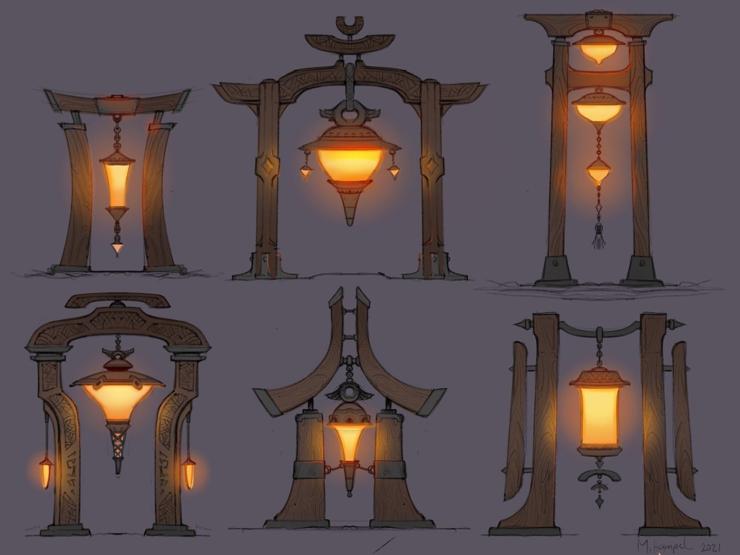 A few lantern structure concepts done in Procreate